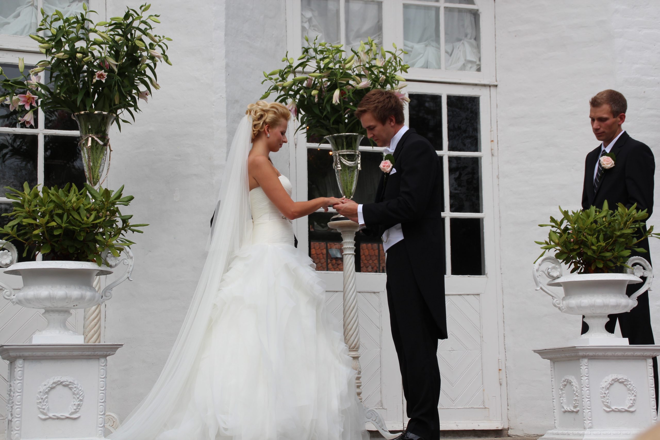 Vielsen afholdes omgivet af grønne arealer og slottets omgivelser og inkluderer opstilling af vielsesområdet, rød løber, blomster samt vielsesstole, så rammerne er på plads til en smuk og uforglemmelig ceremoni.